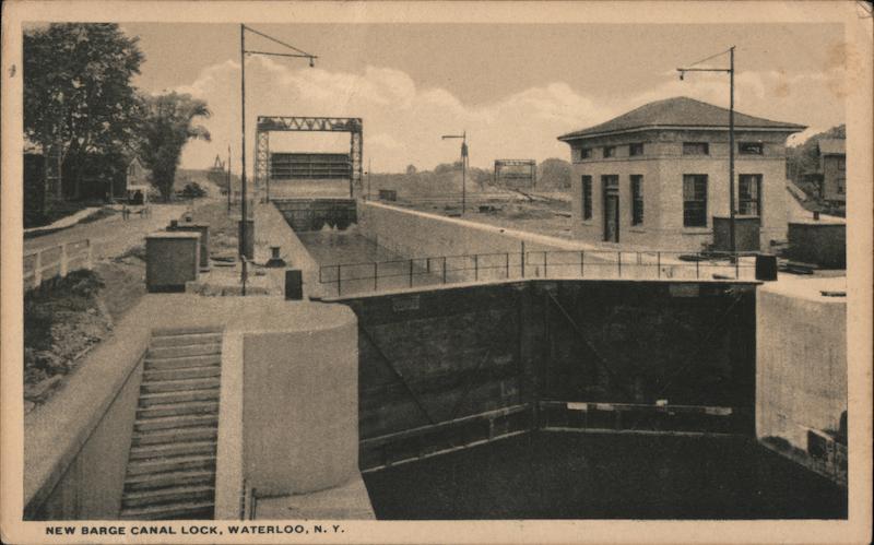 Front: NEW BARGE CANAL LOCK, WATERLOO, N. Y. F Thi Back: Ceng 11/20 This canal in back of juist the house in which mean we skyning to night Dapa C.T. DOUBLETONE AD-9503 CARE ... $1,50 Miss Flizabeth Butler, 43 Poplar St.₂, Danvers, Mass.