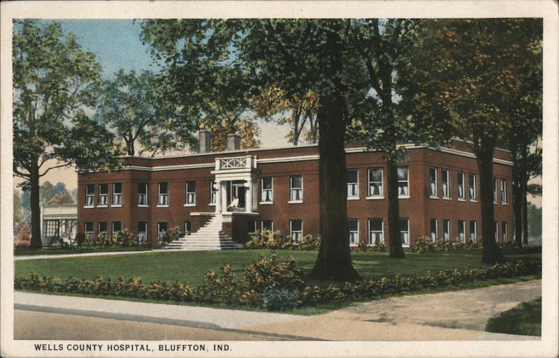Front: XIX WELLS COUNTY HOSPITAL, BLUFFTON, IND. tk Back: 28 MERICAN A-100836 TE AND ISLAND POSSESSIONS, CUBA, CANADA AND MEXICO FOR FOREIGN