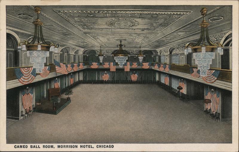 Front: CAMEO BALL ROOM, MORRISON HOTEL, CHICAGO Rated 5 Back: 55101-PUB. BY COMMERCIAL COLORTYPE CO., CHICAGO, ILL. MORRISON HOTEL The Hotel of Perfect Service Personal Management of Harry C. Moir COMMERCIALCHROME 254 STAMP HERE
