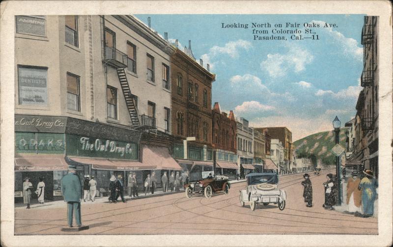 Front: AMPITAM Cichlorem DENTISTS *** e Cul Drug Ca QRAKS The Ouel Dames The C The On! Drug Co Looking North on Fair Oaks Ave. from Colorado St., Pasadena, Cal.-11 BAB EL Back: 24651N Co K