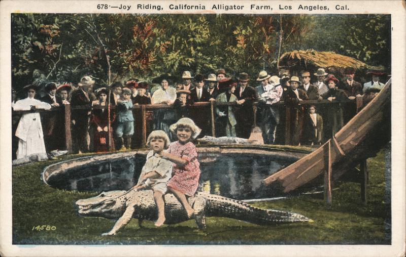 Front: 14580 678:-Joy Riding, California Alligator Farm, Los Angeles, Cal. AHA Back: Pub. by the M. Kashower Co., Los Angeles, Cal. MADENUSA IN STAMP HERE