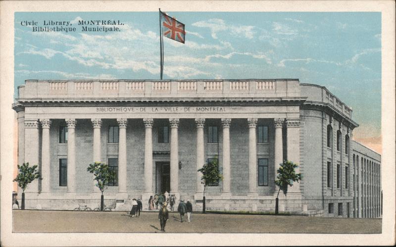 Front: Civic Library, MONTREAL. Bibliothèque Municipale. 4.9 BIBLIOTHEQVE DE LA VILLE DE MONTREAL 26 22 Back: 20300 Writing Space - Correspondance Name and Address - Adresse