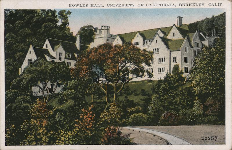 Front: HE BOWLES HALL, UNIVERSITY OF CALIFORNIA, BERKELEY, CALIF. LV WI WIL 10 www000000000 30557 Back: Pub. by Western Notion & Novelty Co., Oakland, Calif. Dost TWO CENTS