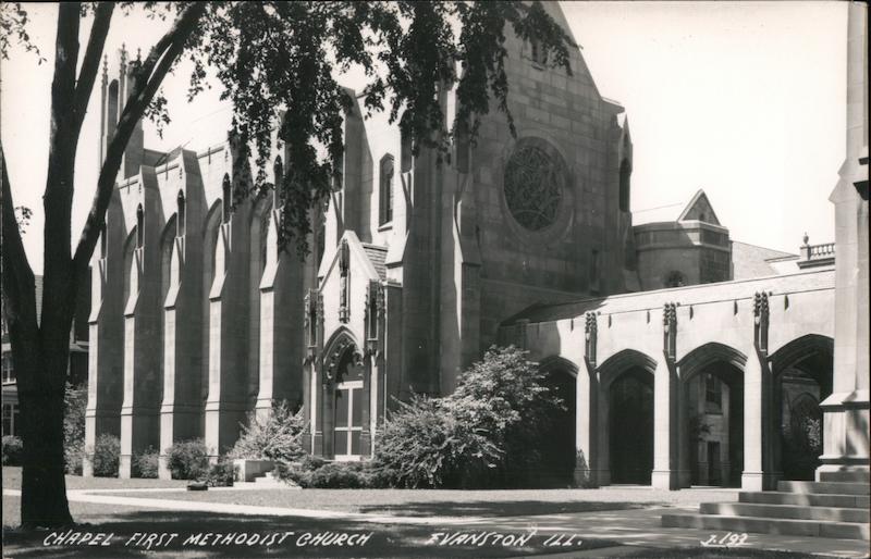 Front: CHAPEL FIRST METHODIST CHURCH EVANSTON ILL 7.193 Back: POST CARD EK Ek ALL RIGHTS RESERVED THE L. L. COOK CO., MILWAUKEE 1