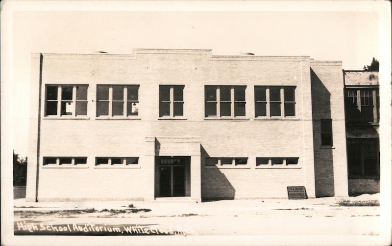 Front: C 30 10 UDITORIUM High School Auditorium, While con P.W.A.PROJECT DOCKET MICHLAN-10308 CLINTON E BROWN CO Back: TE LINM CLO JUL 20 DRIO 30 A 1938 JOLLY FRANKLIN Misel Beckheit 25 Congress are t Sel Rapuls merking P