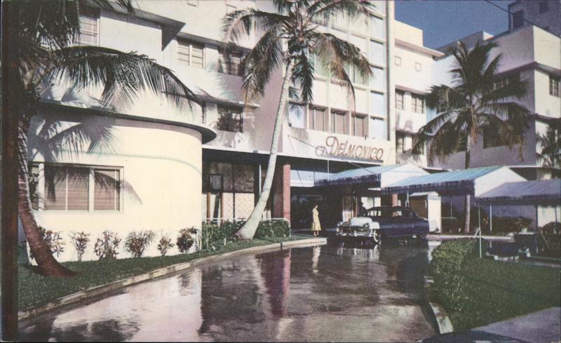 Front: TAILUA DELMONICO 117 Back: The DELMONICO ON THE OCEAN AT 64th ST., MIAMI BEACH, FLA. COMPLETELY AIR CONDITIONED. . . . SWIMMING POOL, PRIVATE BEACH, CABANA COLONY, DINING, DANCING AND ENTERTAINMENT NITELY. MIAMI, FLA. MILLER PRESS HERE
