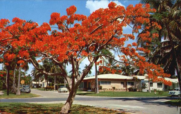 Florida's Royal Poinciana: one of the most beau- tiful flowering trees in the world. Color Photo by H W Hannau Florida Natural Color, Inc., 2652 N.E. 189th St., Miami, Fla. 33163 Roppel Color Cards, HAWTHORNE, N. J. FG-38 13417 HERE