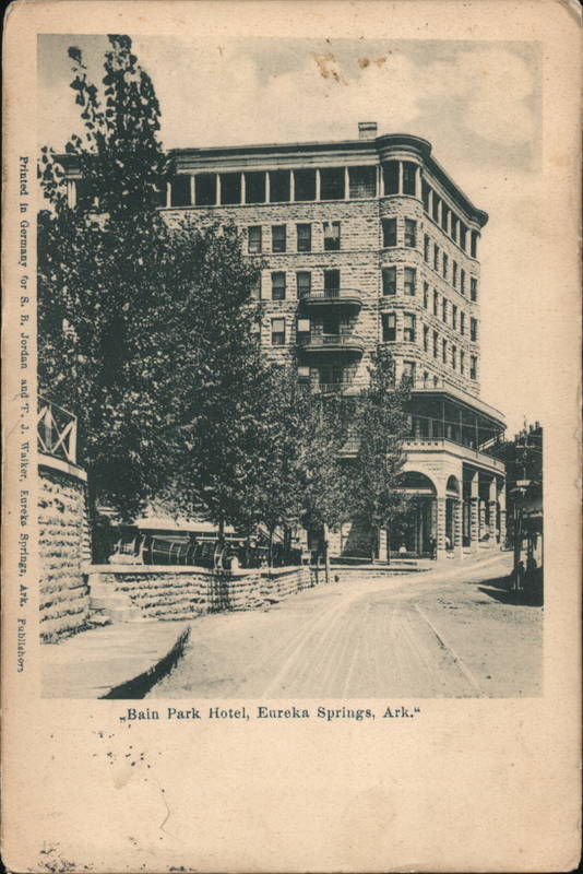 Front: 11 CHER Crven Bain Park Hotel, Eureka Springs, Ark." Back: i 1906 ANNEX Wd 25 *52001 nov SPRING AUG 7 8 PM 9061 ST SERIEN AN /. AUG 9-1906 Miso Fannie Straswalt Shelly selle UNITER 1706 FRANKLIN 1790 Illinirs