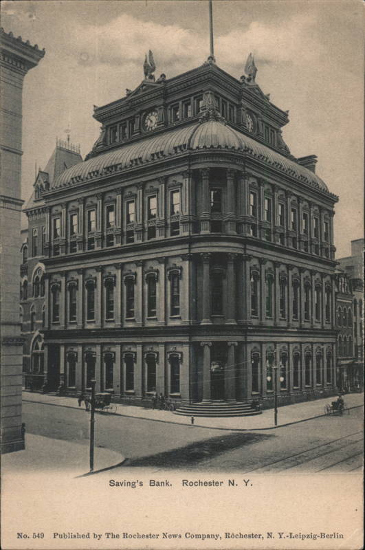 Front: SAVING Saving's Bank. Rochester N. Y. 960 No. 549 Published by The Rochester News Company, Rochester, N. Y.-Leipzig-Berlin Back: Two cents