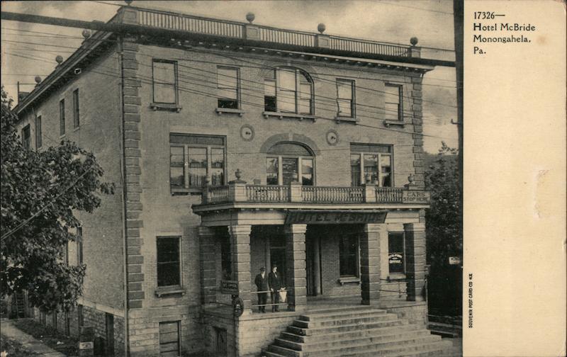 Front: 711 ** OFFICE, CARS STOP HERE SOUVENIR POST CARD CO N.X 17326- Hotel McBride Monongahela, Pa. Back: TWO CENTS