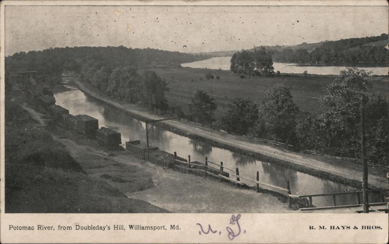 Front: Potomac River, from Doubleday's Hill, Williamsport, Md. iu, g R. M. HAYS & BROS. Back: 3- miss at lo sfockles. #112 S. Charles St. Busartenstreng Av Bray