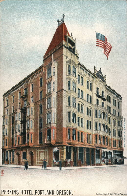 Front: 6034 PERKINS HOTEL PORTLAND, OREGON. Published by 8.B.Rich. Official Stationer Back: ONE CENT STAMP & MEXICO TWO CENT STAMP FOR ALL OTHER COUNTRIES. .....