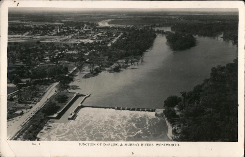 Front: No. 1 JUNCTION OF DARLING & MURRAY RIVERS, WENTWORTH. Back: A Real Photograph Produced in Australia