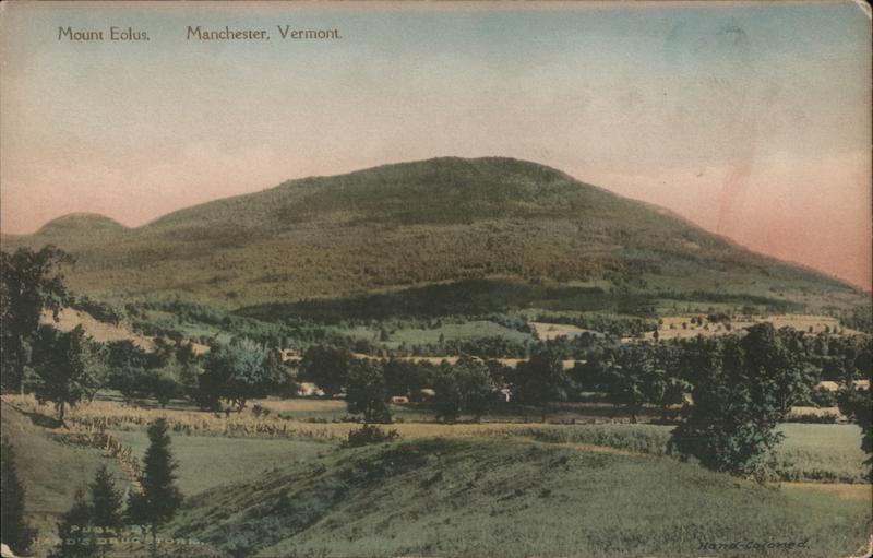 Front: Mount Eolus. Manchester, Vermont. PUBLY HARD'S DRUG STORE, Hand-C Poned, Back: Post Cards of Quailty. - The Albertype Co., Brooklyn, N. Y. POST CARD
