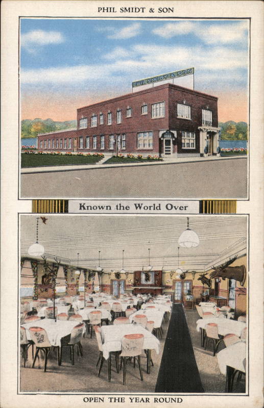 Front: PHIL SMIDT & SON PHIL SMIDT & SON] Known the World Over OPEN THE YEAR ROUND Back: Phil Smidt & Son Home of Famous Fish-Chicken-Frog Leg Steak Dinners Roby, Ind. Phone WHiting 25-26 -MADE IN U.S.A. BY E. C. KROPP CO., MILWAUKEE, WIS. 2895 Co