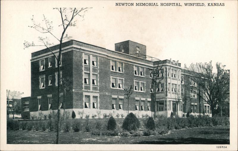 Front: Ell NEWTON MEMORIAL HOSPITAL, WINFIELD, KANSAS 00 NO 120724 Back: C.T. PHOTO-FINISH REG.U.S. PAT. OFF. MADE ONLY BY CURT TEICH & CO., CHICAGO 100 HERE