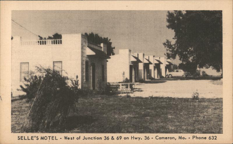 Front: VACANC SELLE'S MOTEL - West of Junction 36 & 69 on Hwy. 36- Cameron, Mo. - Phone 632 Back: NATIONAL PRESS CHICAGO 1c IN U. S. A.