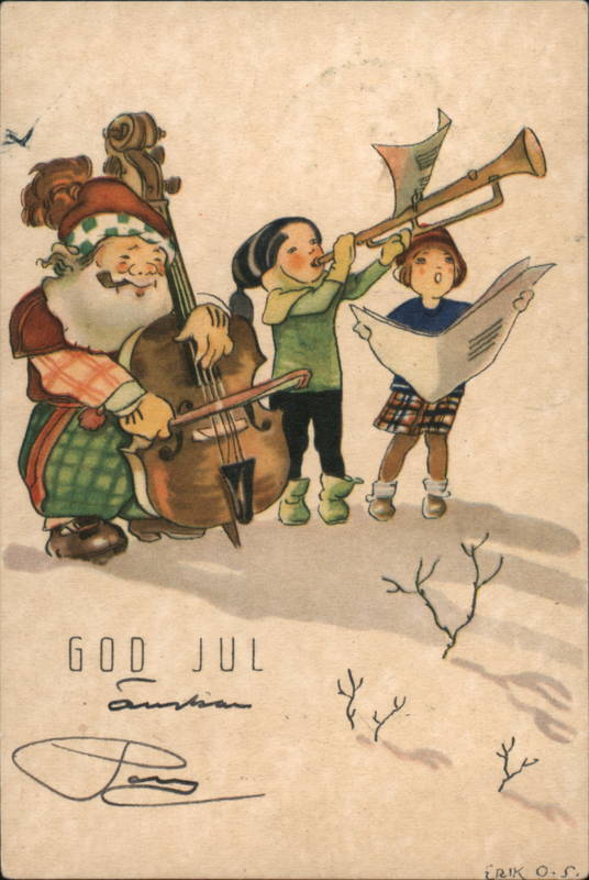 Front: GOD JUL austion Fas XY ERIK O.S. Back: Axel Eliassons Konstförlag A.B., Stockholm Für Weie Meeberg Heart Svensk tillverkning 5 öre SVENSK PRESS 300 AK SVERIGE ARIY سل من Celsiusgaten 5 Stockholm B