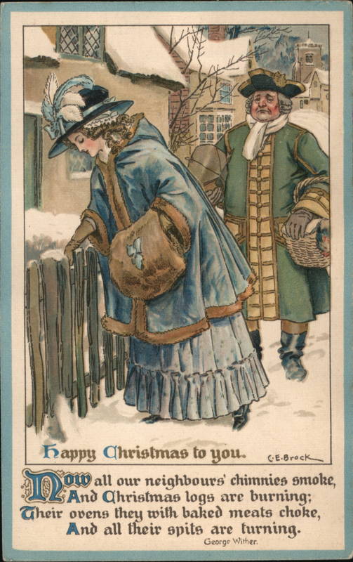 And Christmas logs are burning;