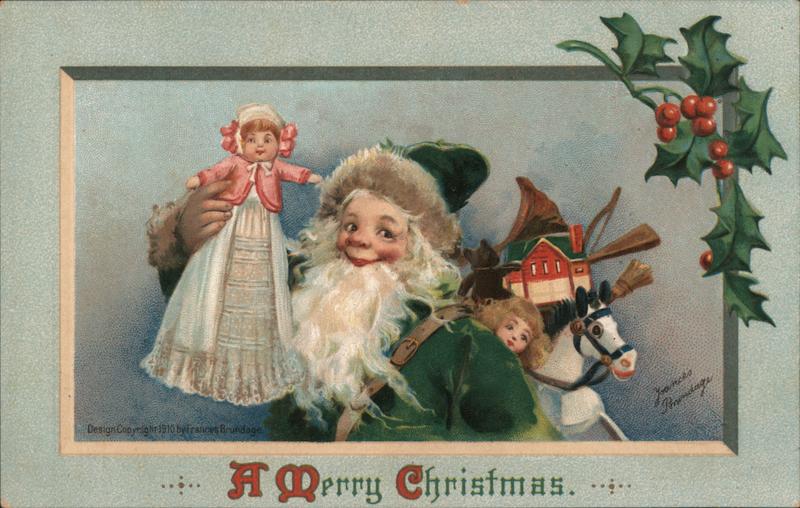 Front: Design Copyright 1910 by Frances Brundage A Merry Christmas... EL Frances Prundage Back: "Christmas" Series - Postcard No. 200. For Correspondence. & Canada to Eath Ferem aint masy