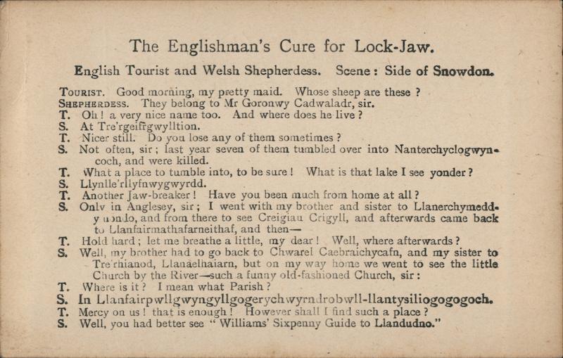 S. Not often, sir; last year seven of them tumbled over into Nanterchyclogwyn