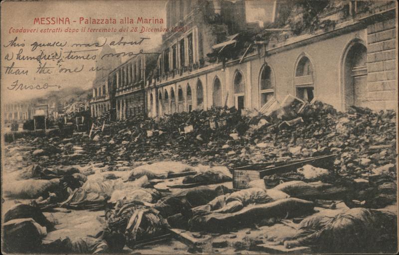(cadaveri estratti dopo il terremoto del 28 Dicembre 1908)