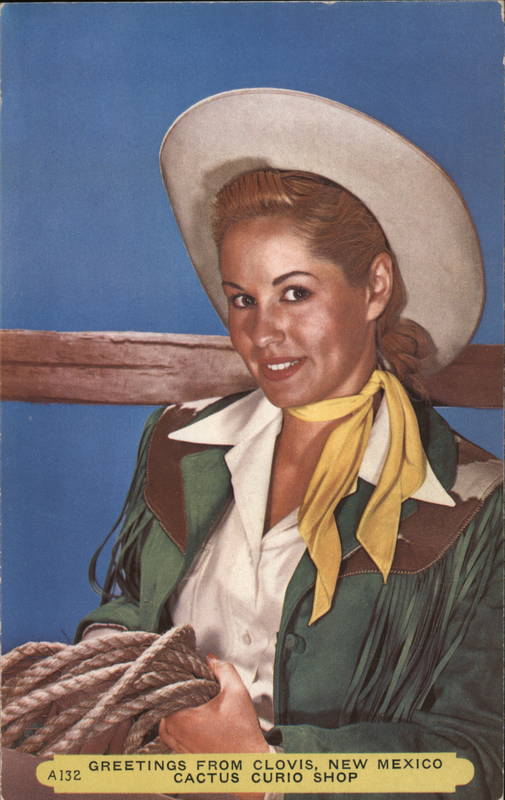 Front: A132 GREETINGS FROM CLOVIS, NEW MEXICO CACTUS CURIO SHOP Back: POST Rembrant Cann X₁ 20 PUBLISHED BY NOBLE, COLORADO SPRINGS, COLORADO here