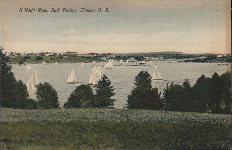 Front: A Yacht Race, Back Barbor, Chester n. S. Back: R. H. Davis & Co., Ltd. Yarmouth N. S. Blue Nose Series 1 c. Canada & 2 c Foreign