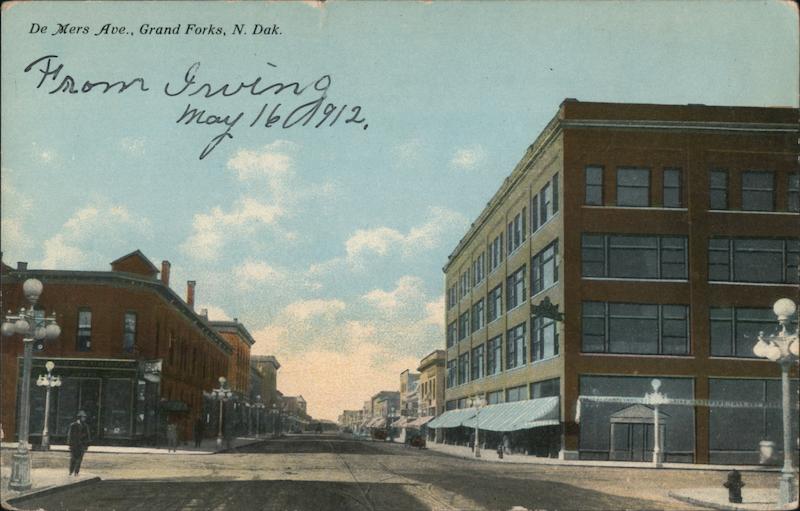 Front: De Mers Ave., Grand Forks, N. Dak. From Iwing May 16 A912. MINEI 77 Back: TAIS SPACE FOR WRITING MESSAGES. A-12333 15