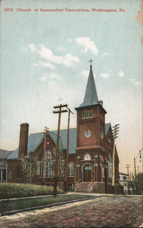 Front: 13712 Church of Immaculate Conception, Washington, Pa. 1412 Har LA 12 m² 200000 1044 Back: please J.J. 4900. Callagan Hom Helew Baldurs # 338 Bular Cur Par 35