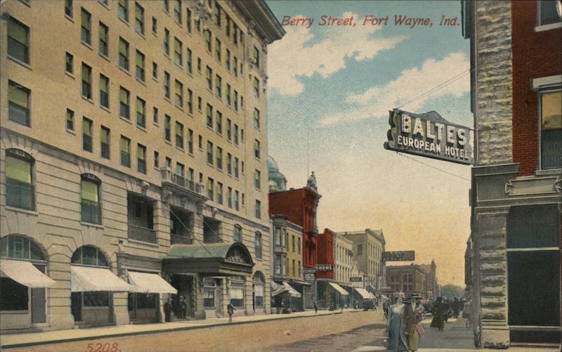 Front: 17 43374177/00 137/2747 34131477 ייב ווי 107 5208. 33111 Berry Street, Fort Wayne, Ind. 11 HOME BALTES EUROPEAN HOTEL Back: As STAMPHERE TWO CENTS