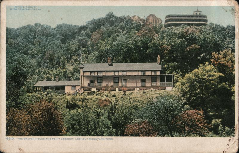 Front: COPYRIGHT, 1902. BY DETROIT PHOTOGRAPHIC CO. 322 6910. THE CRAVEN HOUSE AND POINT LOOKOUT, LOOKOUT MOUNTAIN. TENN. t Back: MADE ONLY BY DETROIT PUBLISHING CO. "PHOSTINT" CARD. THIS SPACE MAY BE USED FOR MESSAGE. FOREIGN. TWO CENTS