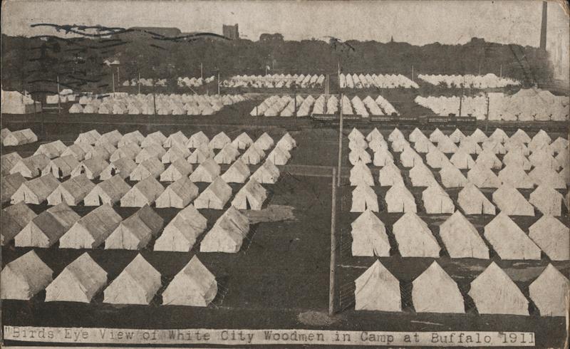 Front: 4SMX M ww "Birds Eye View of White City Woodmen in Camp at Buffalo 1911 Back: POST D FFALO JUN 7-PM 1911 FOR CORRESPONDENCE ONLY Joy. (11 LECI ofstus 28 qoist nt nemboot wie burutzom OMECENA Mr. W. Lammers 5 35 Furmer St Grand Rapida Mich.