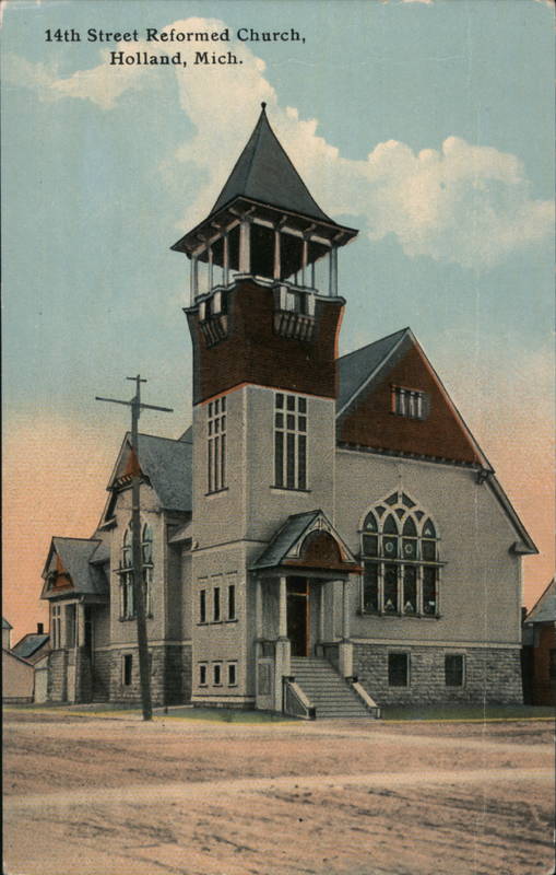Front: 14th Street Reformed Church, Holland, Mich. III 111 Ollo Back: PUBLISHED BY COSTER PHOTO SUPPLY CO., HOLLAND, MICH, Bu R-19496 THIS SPACE FOR ADDRESS ONLY.