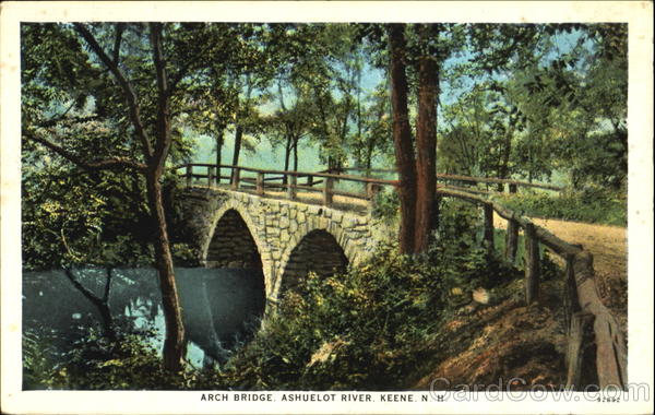 Front: ARCH BRIDGE, ASHUELOT RIVER, KEENE, N. H. 92892 Back: KRANKLIN کنه و امیدی ناتو نه در بیان لیا۔ Nicole C. T. AMERICAN ART COLORED منكر مر - به مد ا رس به ت لبدري سنه لما اس والسلام سن ولی در نه من تله باراسيك