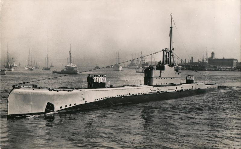 A BRITISH SUBMARINE LEAVING HARBOUR.