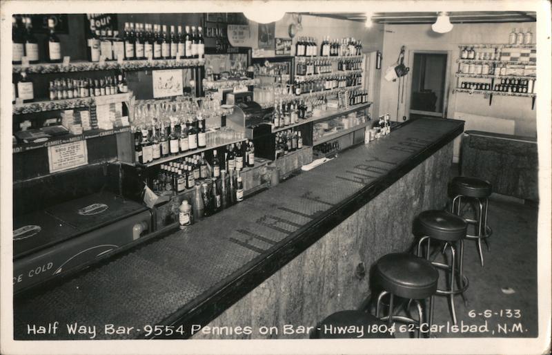 Half Way Bar-9554 Pennies on Bar-Hiway 1804 62-Carlsbad, N.M.