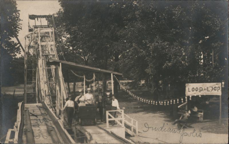 Front: DO NEXT LOOD LOOP Indianapolis Back: SOUVENIR OF WHITE CITY, INDIANAPOLIS • 1 ΣΟ PMC ♦ P PLACE M STAMP • Ω Σ Ο ( PM C ( Visit White Cel Mon Julch 1- 1907- Marganel