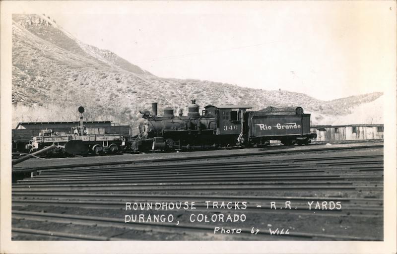 Front: SELANGE 346 Rio Grande ROUNDHOUSE TRACKS R.R. YARDS DURANGO, COLORADO Photo by WILL ยท Back: -Kodak- PLACE 1 - Paper-