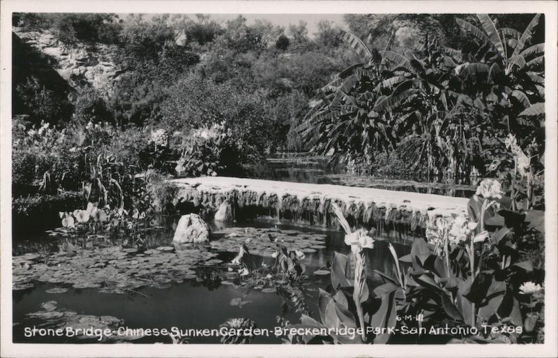 Front: 6-M-111 Stone Bridge Chinese SunkenGarden-Breckenridge Park-San Antonio, Texas Back: AUTO ISO A Photograph Card M Cline Co ga Tena
