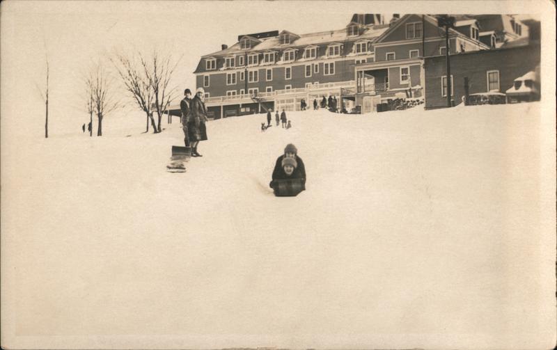 < NO G. T. RABINEAU Паводдан Slide on Stevens House Онас till. Sue du mond + Gwen Dashnaw coming down slide. Pertrail and Commercial Photographe LAKE PLACID, N. Y. CORRESPONDENCE