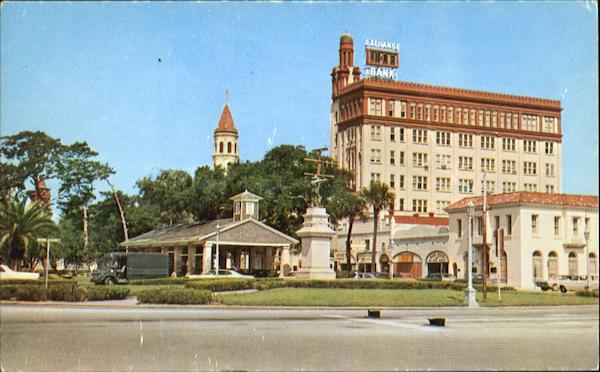 Front: CLOAKS EXCHANGE BANK Back: Plaza de la Constitucion, St. Augustine, has the layout of a typical 16th century Spanish colonial town. INTERNATIONAL GRAPHICS, INC., HOLLYWOOD, FLA. Graphics 00307