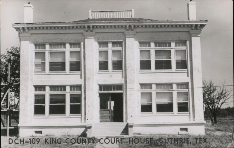 Front: DCH-109 KING COUNTY COURT HOUSE CUTHRIE, TEX Anaan Back: Photography by Don Bartels, McAllen, Tex. GENUINE PHOTOCRAPH "GROGANIZED" DANVILLE, ILL. (MADE IN U.S.A.)- POST CARD