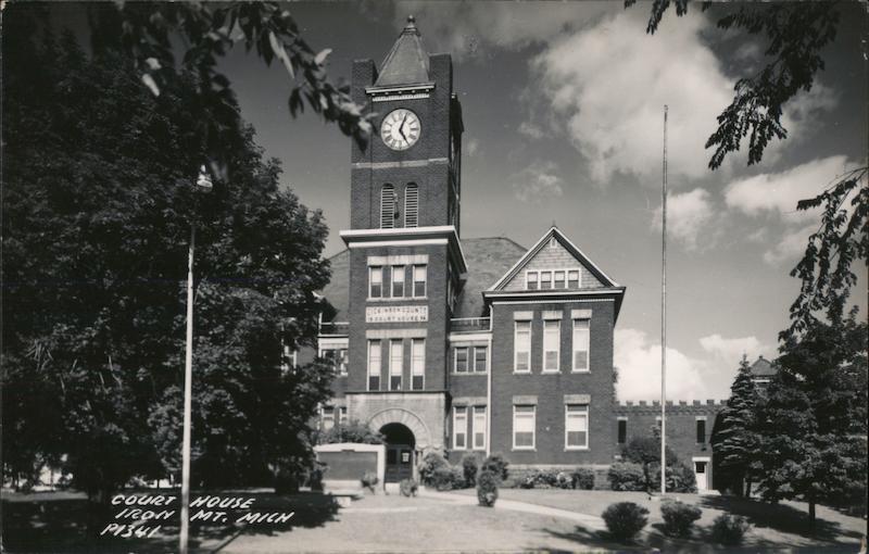 Front: COURT HOUSE IRON MT. MICH ICH P134E DICKINSON COUNTY 18 COURT HOUSEN AAAA Back: Dickinson Co POST CARD TEK ALL RIGHTS RESERVED THE L. L. COOK CO., MILWAUKEE 1