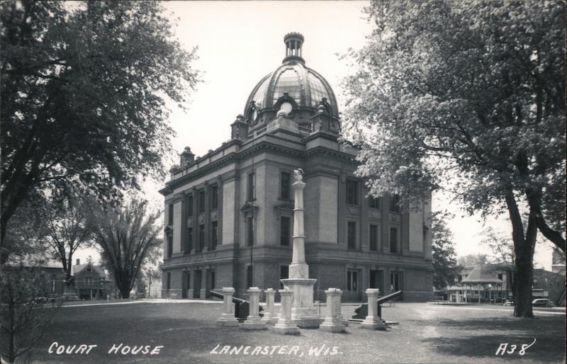 Front: COURT HOUSE LANCASTER, WIS A38 Back: 1.00 ALL RIGHTS RESERVED-THELL COOK CO., MILWAUKEE ро EKE f