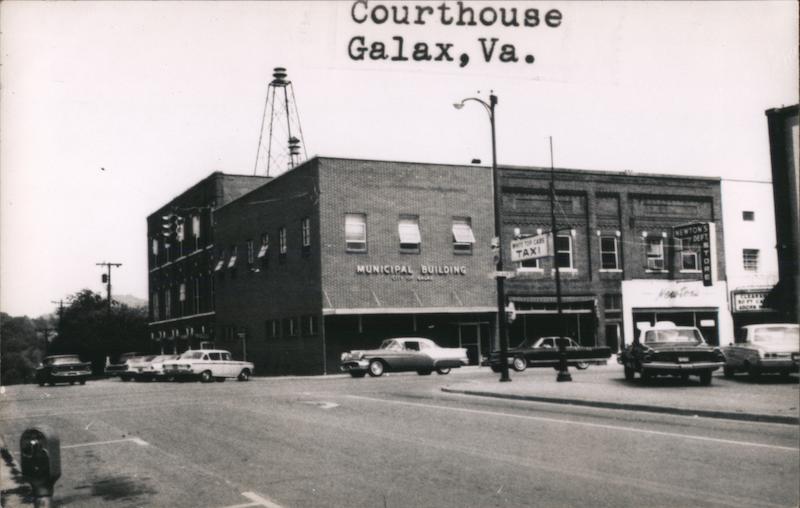 Front: 111 Courthouse Galax, Va. MUNICIPAL BUILDING CITY OF WHITE TOP CABS TAXI NEWTON'S DEPT 50 FT CA ADORN Back: - Kodak --Paper-- I