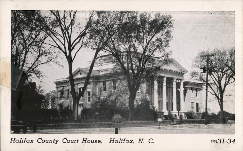 Front: $7 STOP Halifax County Court House, Halifax, N. C. PR31-34 Back: it's a R. WIS. POST CARDS BOX 116 WHITE HERE