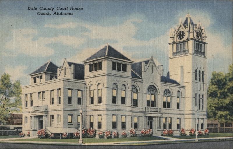 Front: LAURA LEONORA Dale County Court House Ozark, Alabama TH 11 19 IN IC-H324 Back: LURIE NEWS AGENCY, DOTHAN, ALA. GENUINE CURTEICH-CHICAGO "C.T. ART ST CARD (REG. U.S. PAT. OFF.) PLACE