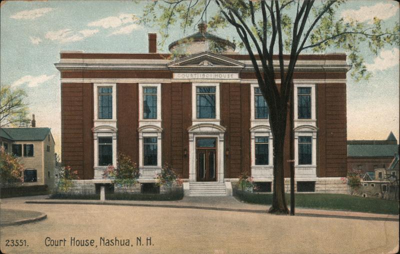 Front: 23551. COURT 190I HOUSE BORGE Court House, Nashua, N. H. Back: 100 SOUVENIR POST CARD CO. NEW YORK. TWO CENTS