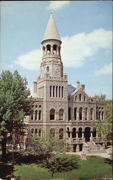 Was built in 1886 from native limestone which was quarried one mile southwest of town and cut on the city square. The clock faces are six feet in diameter. The weights operating the clock mechanism are boxes filled with several tons of crushed stone